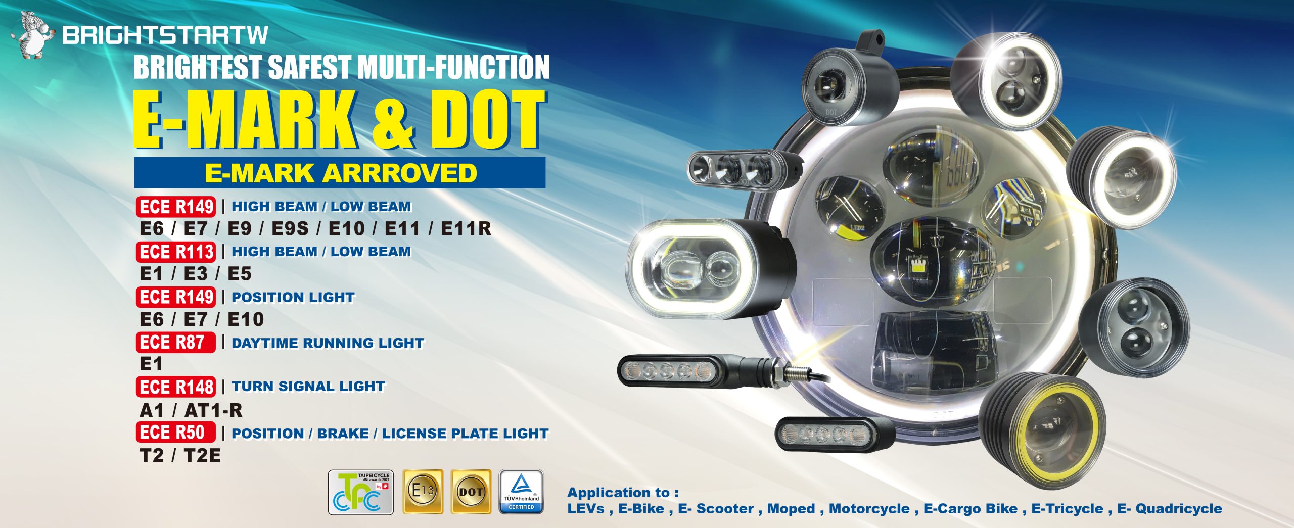 It provides compliant illumination with E-mark R50 certification for daily riding use.